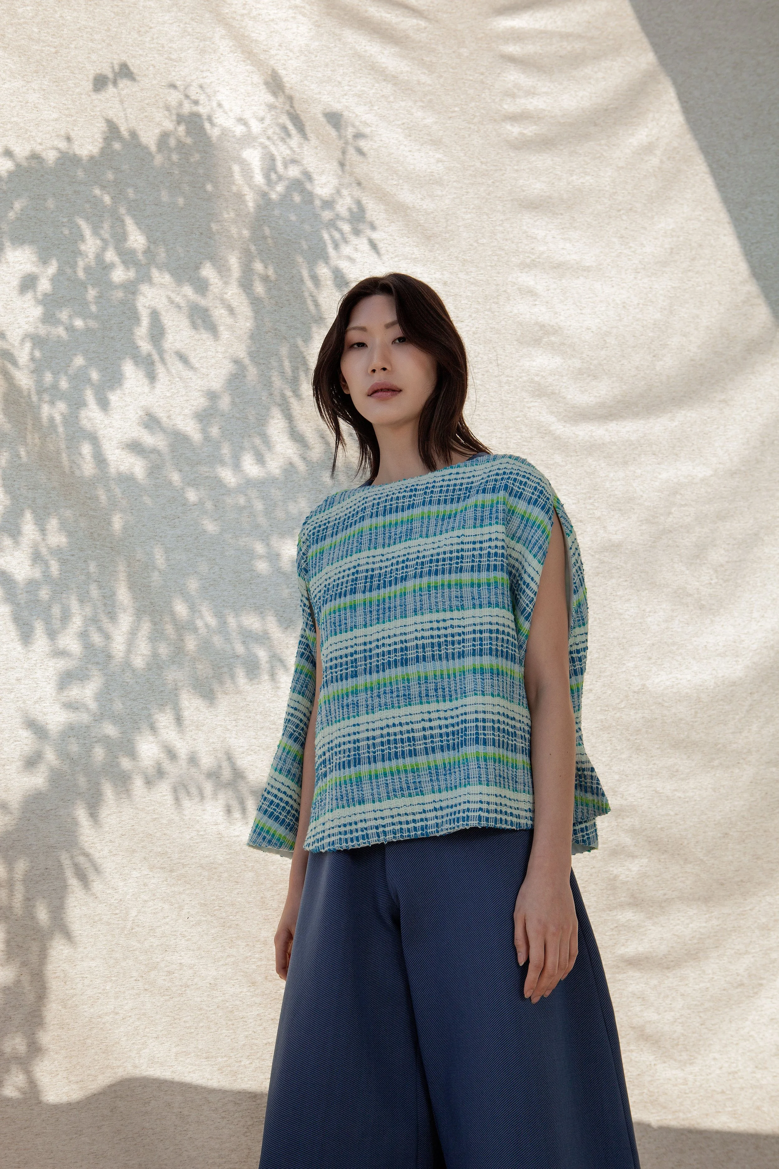 in a beautiful striped knit, based on my hand woven fabrics, exclusively made for Malin Iovino